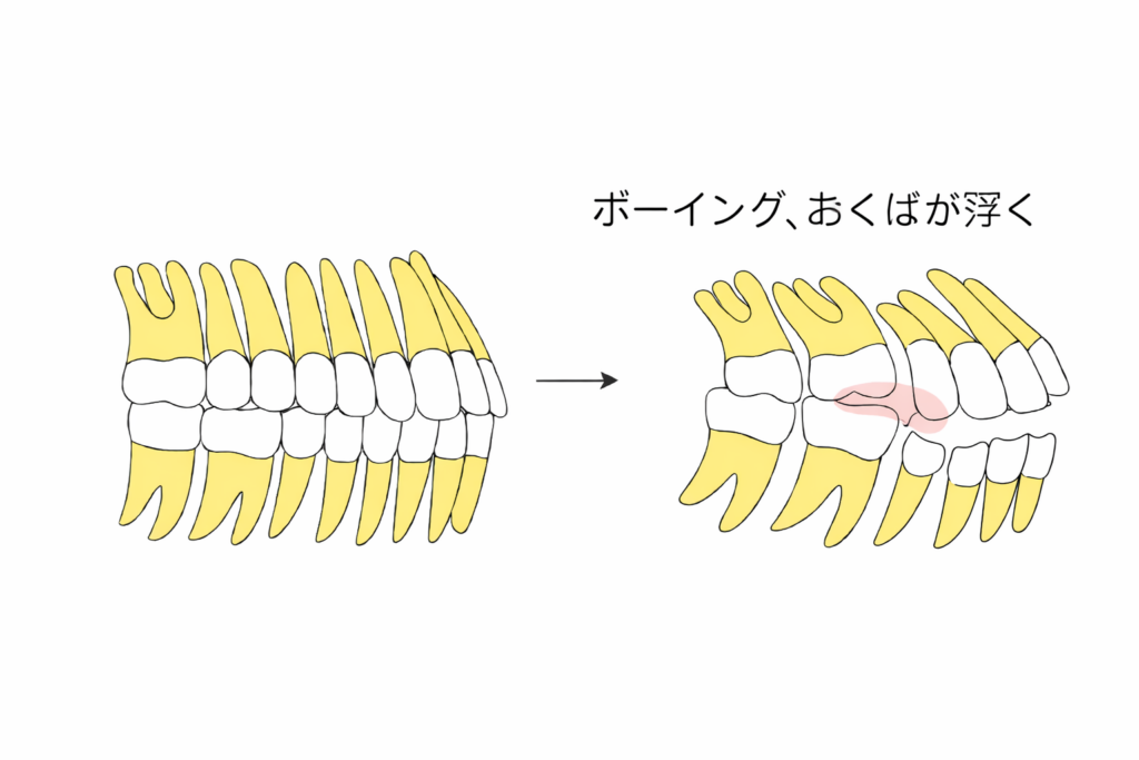 すでに歯周病があり、歯がグラグラとしている場合には、先に歯周病の治療をすることが必要です。そのグラついた歯の状態で矯正治療をすすめていくと、更に歯が揺れて、歯を失うリスクがともないます。歯周病は30代の3人に1人がかかっている自覚症状のない病気で、保険治療で治療することができます。