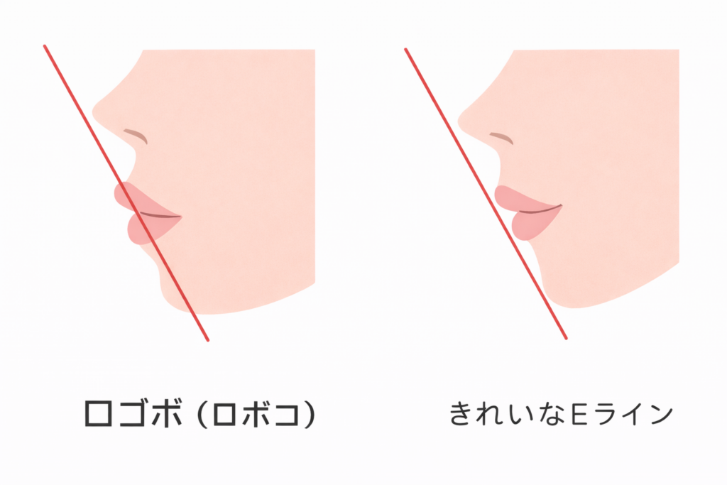 Eライン(エステティックライン)とは、横顔の鼻先とあご先を結んだラインのことです。口元が出ているとラインが崩れ、いわゆる「口ゴボ」「口ボコ」といったイメージになるため、歯並びと同時にEラインを整えると印象がUPします。経験上、外科的な骨切り(セットバック)をしなくても、たいていの口元は引っ込められます。また、口元を引っ込めると相対的に鼻が高くなった印象を与えることも期待できます。当院では、歯並びを綺麗にするだけでなく、鼻や顎、口元の印象を総合的に考えた矯正をし、顔に似合った歯並びをつくります。